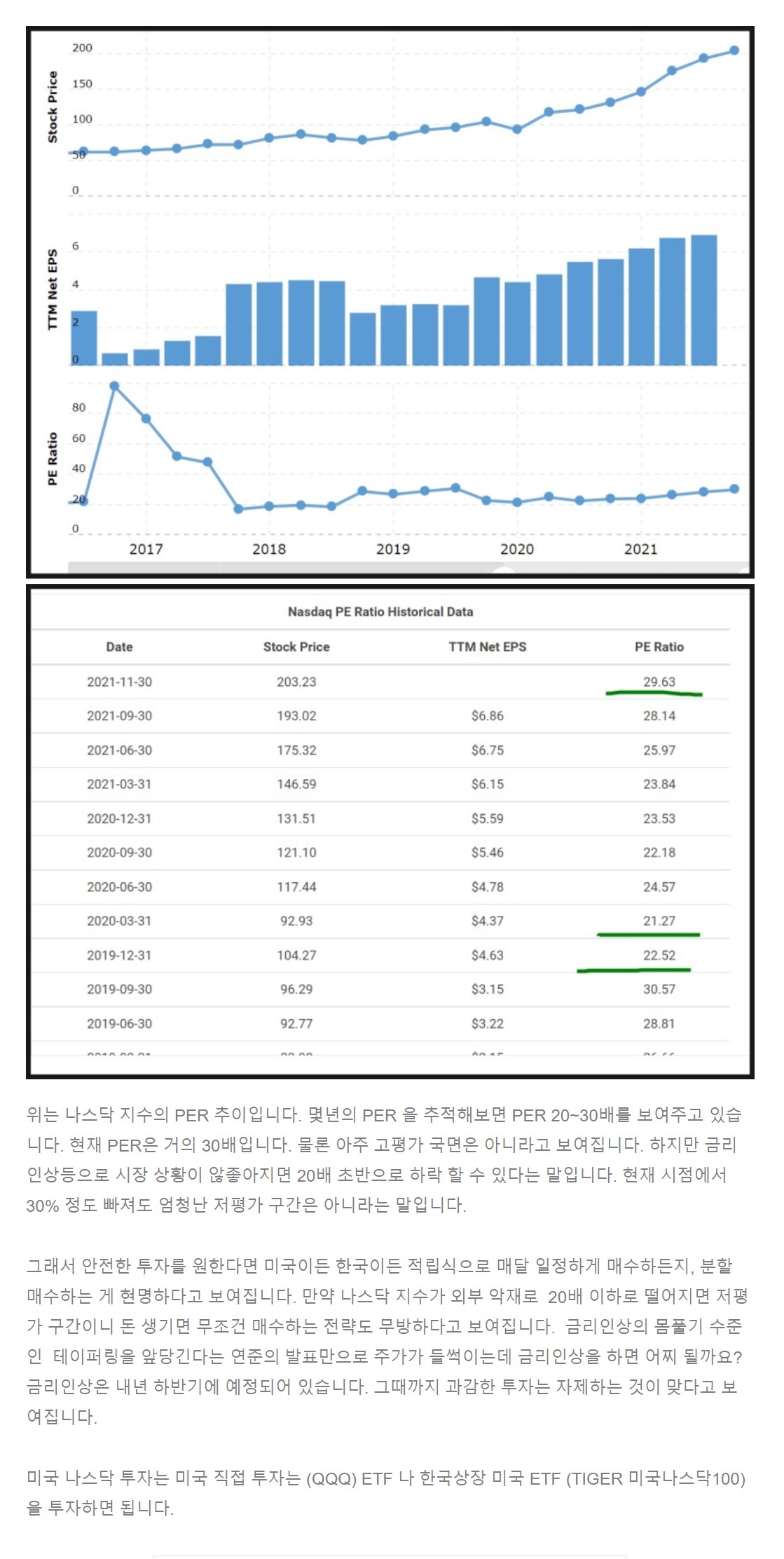 나스닥 지수(QQQ ETF) 고평가(PER) 일까?