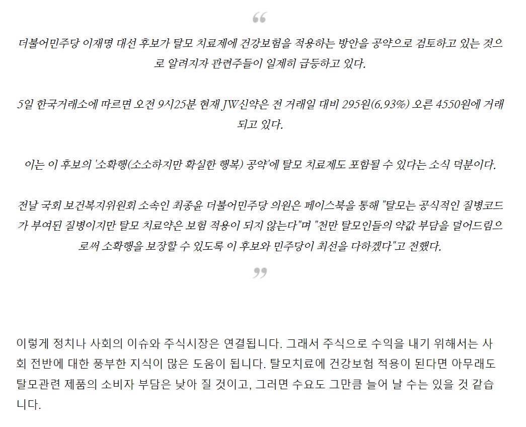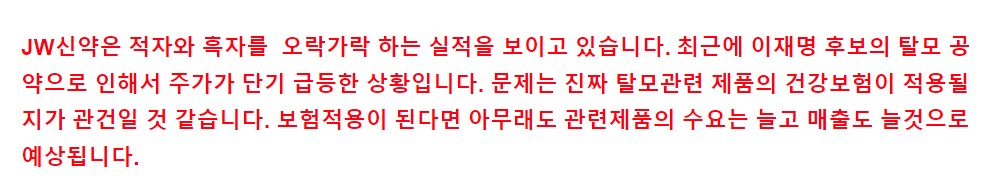 탈모 관련주, TS트릴리온 JW신약 현대약품 주가