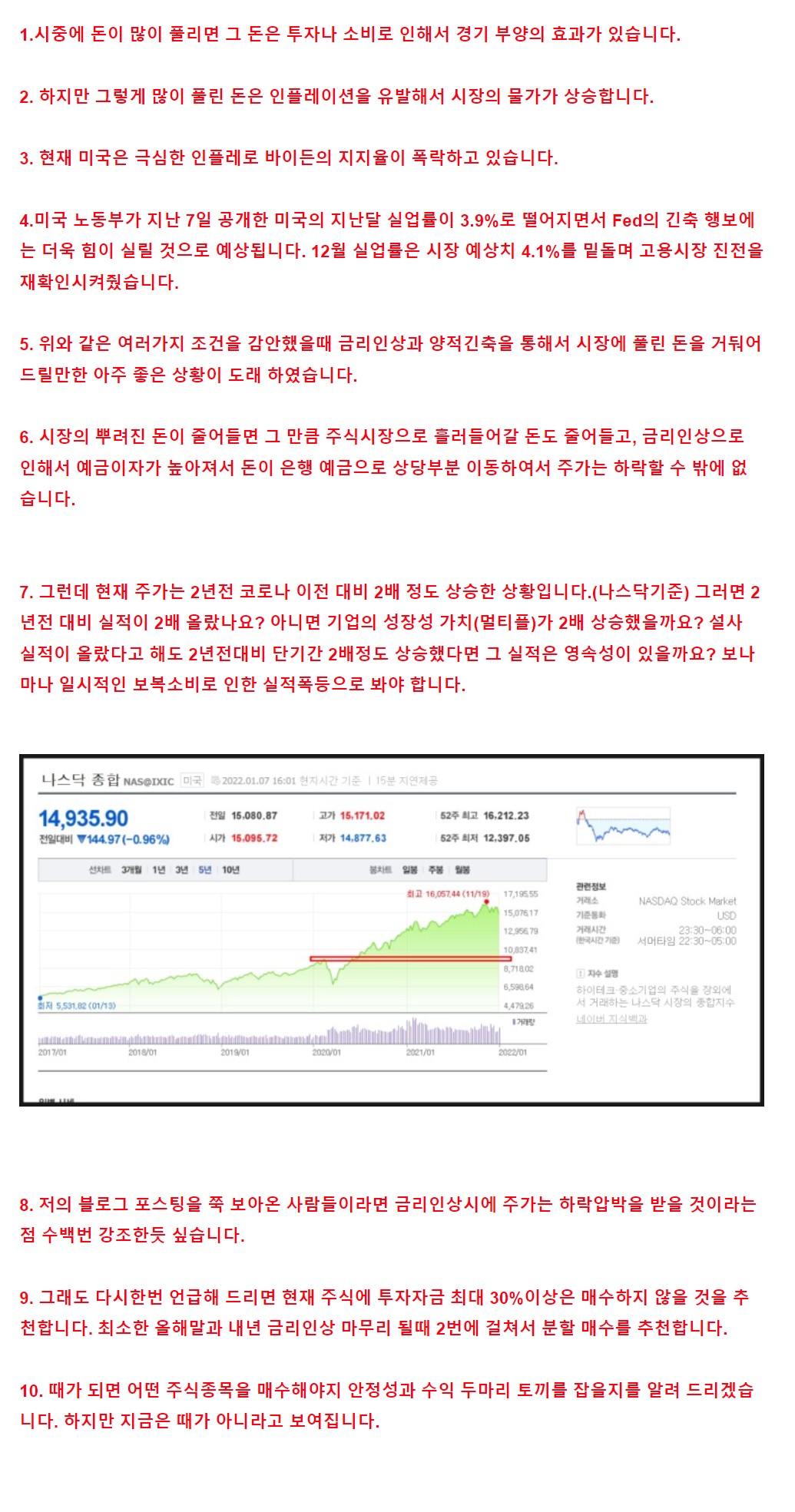 연준은 최근 공개한 12월 연방공개시장위원회(FOMC) 정례회의 의사록에서 기존 예상보다 더 이르거나 더 빠른 속도의 금리인상은 물론 보유 자산을 축소해 시중의 유동성을 흡수하는 양적긴축까지 예고했다.