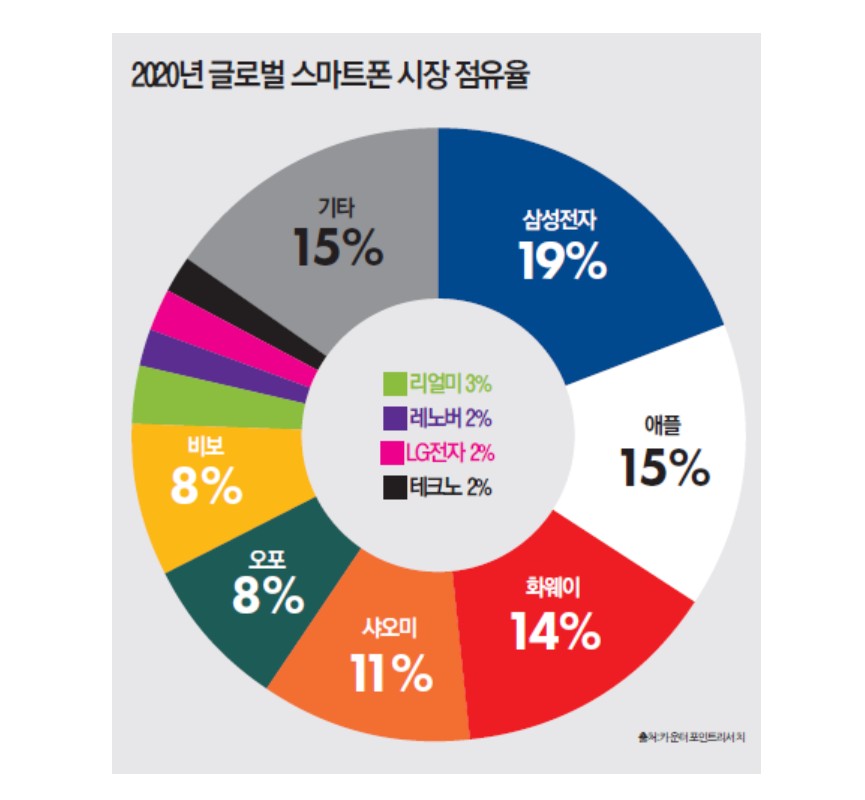 "스마트폰이 과거처럼 크게 성장하기 어려운 이유는 애플에 밀리고 중국의 스마트폰 업체에게 치이고 있다"