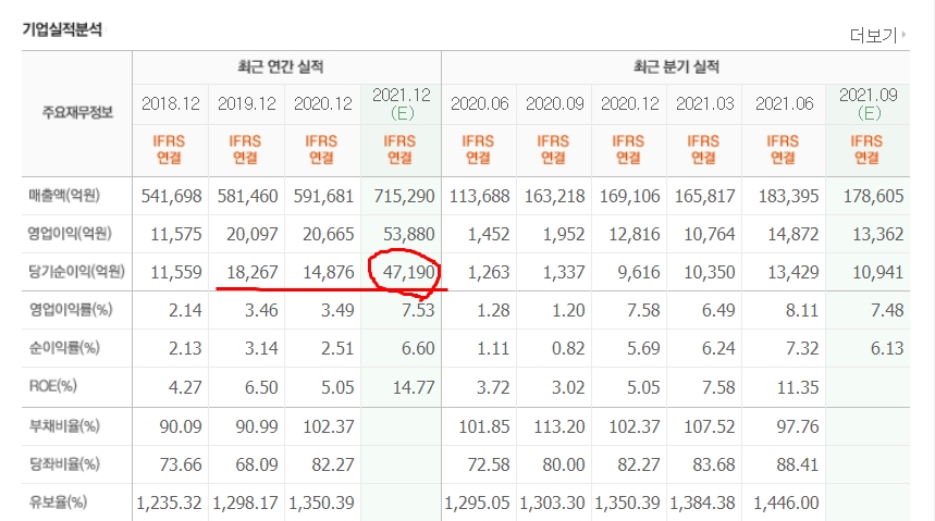 기아차의 작년 순이익은 1조 4000억원인데 반해서 올해에는 4조 7000억원을 예상하고 있습니다. 위에서 언급했다시피 국내와 해외 모두 판매량이 급증한데 따른 영향입니다. 그리고 작년 코로나로 인해서 움추렸던 소비까지 추가로 나오는 것이 아닌가 생각해봅니다. 그리고 현재 기아차의 차종이 현재 히트 쳐서 실적이 좋아졌다고 해도 향후 신차출시도 반드시 히트를 친다는 보장은 할 수는 없습니다.