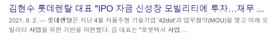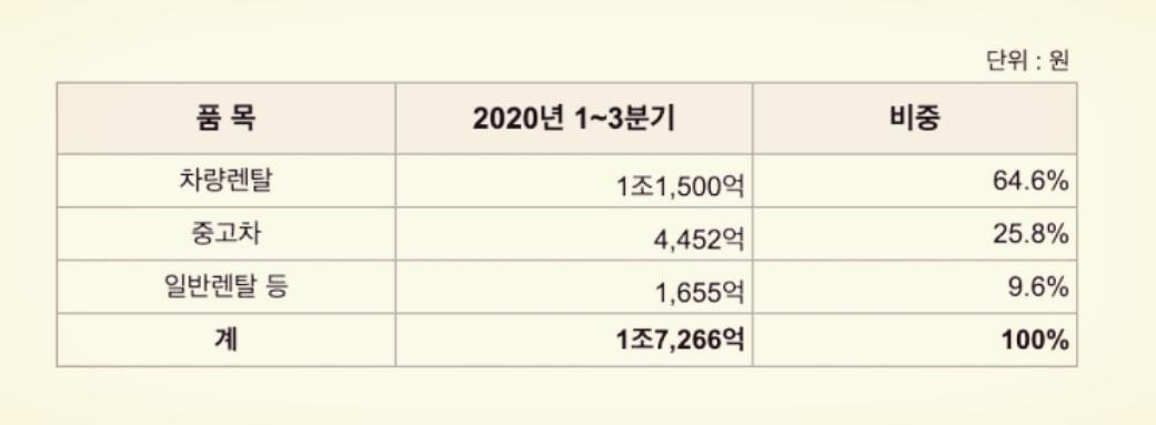 오토렌탈, 중고차, 일반렌탈, 모빌리티(카셰어링) 등 다양한 영역으로 진출해 미래전망도 밝다.