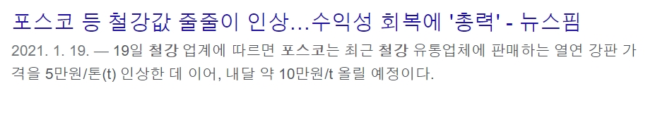 중국 정부는 최근 들어 탄소배출 감축을 위해 중국 철강업체를 향한 규제를 강화하는 모습을 보이고 있다. 이에 따라 중국 철강 생산량은 줄어들 것으로 예상되고 있다. 문 연구원은 “중국이 철강 생산을 줄이면 제품 수급이 빡빡해지는 동시에 철광석 가격을 끌어내려 중국 외 철강업체에게는 호재로 작용한다”며 “수요 상승과 공급 제한이 겹치고 있는 현상황도 좋지만 상반기 철강업황은 더 좋아질 수 있다”고 내다봤다.