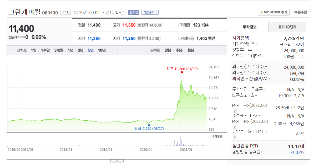 에코바이오038870 켐트로스220260 그린케미칼083420 휴켐스069260 에코프로비엠 247540