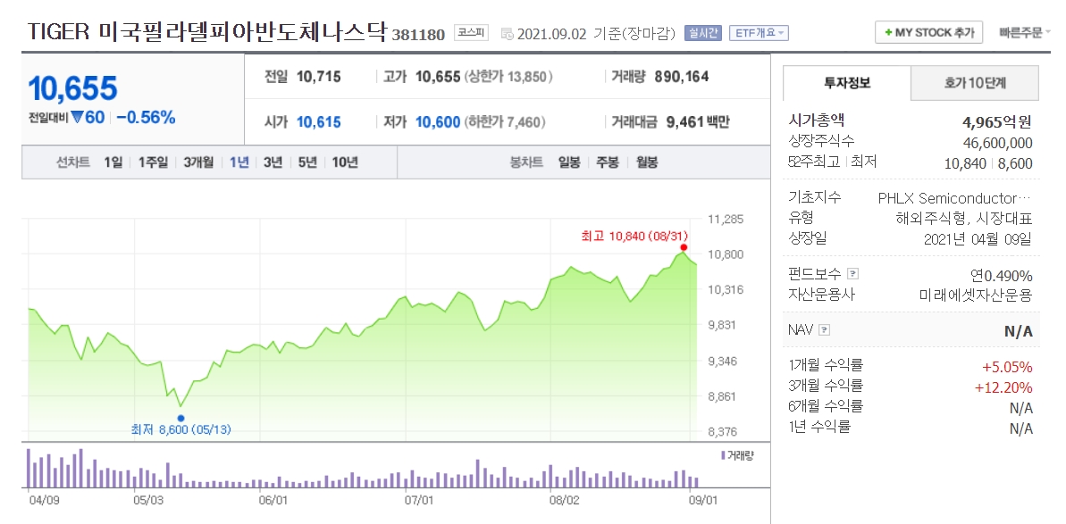 한국 TIGER 미국필라델피아반도체나스닥 381180,
