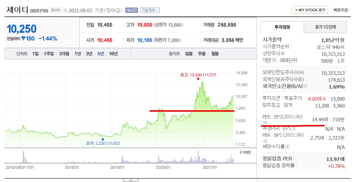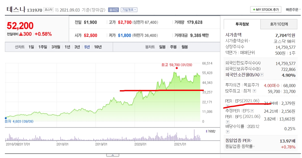 하지만 현재는 이런 성장주들을 투자할 때는 아니라고 보여집니다. 코로나 펜데믹으로 말미암아 엄청나게 풀린 돈으로 전체 주식시장의 고평가가 이루어진 상황이고, 향후 테이퍼링, 금리인상으로 전체 주식시장은 조정이 불가피한 상황입니다. 그때 즈음 조금씩 분할 매수해나가는 것이 장기적인 관점에서는 유리할듯 싶습니다. 설사 현 시점에서 투자를 하더라도 종목별 투자 자금의 20%이상은 넘기지 않는 것이 좋을 것 같습니다.판단은 각자의 몫입니다.