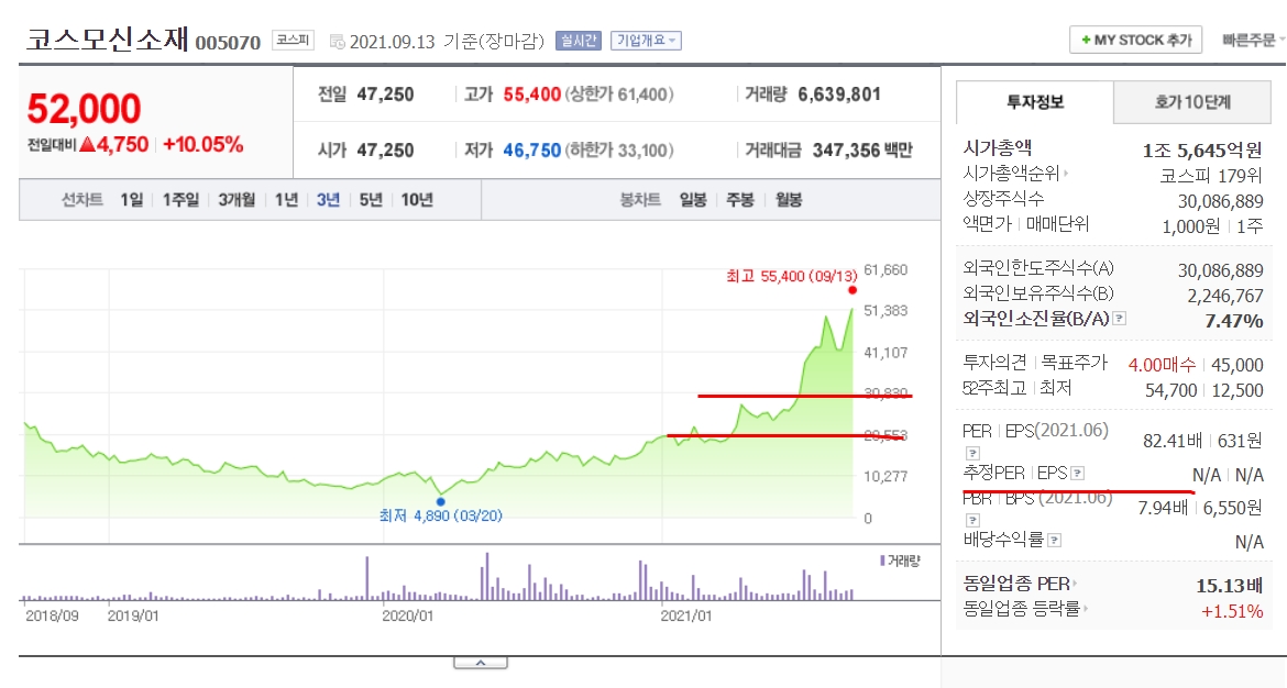 코스모신소재는 기능성필름과 함께 양극재를 생산하는 기업입니다. 주로 삼성SDI와 거래를 하고 있습니다.최근에 실적이 급등해서 주가도 덩달아서 급등하고 있는 상황입니다.