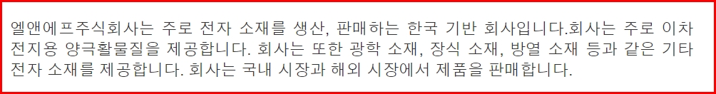 엘앤에프는 LG엔솔과 테슬라에 양극재를 납품하고 있는 업체입니다. 엘앤에프는 적자를 기록했지만 올해는 흑자를 예상하고 있습니다. 향후 지속적인 흑자행진을 이어갈 확률이 많은 상황입니다.엘앤에프는 시장에서 lg엔솔과 테슬라 납품만으로도 주목을 끌기에 충분하고 그런 기대가 주가에 반영되어 있습니다. 엘앤에프는 올해 실적 대비해서는 고평가된 상태는 아닙니다. 하지만 우려되는 점은 너무 단기간 급등했다는 점입니다. 그러면 하방 지지선이 허약해서 대외악재시 한방에 무너질 수 있다는 점입니다. 현재 테이퍼링도 예고 되어 있으니 좀 긴안목에서 매수를 권하고 싶습니다. 조정을 좀 받는다면 30%정도 매수하고 추가로 하락시 추가매수하는 전략이 맞지 않을까 생각합니다.