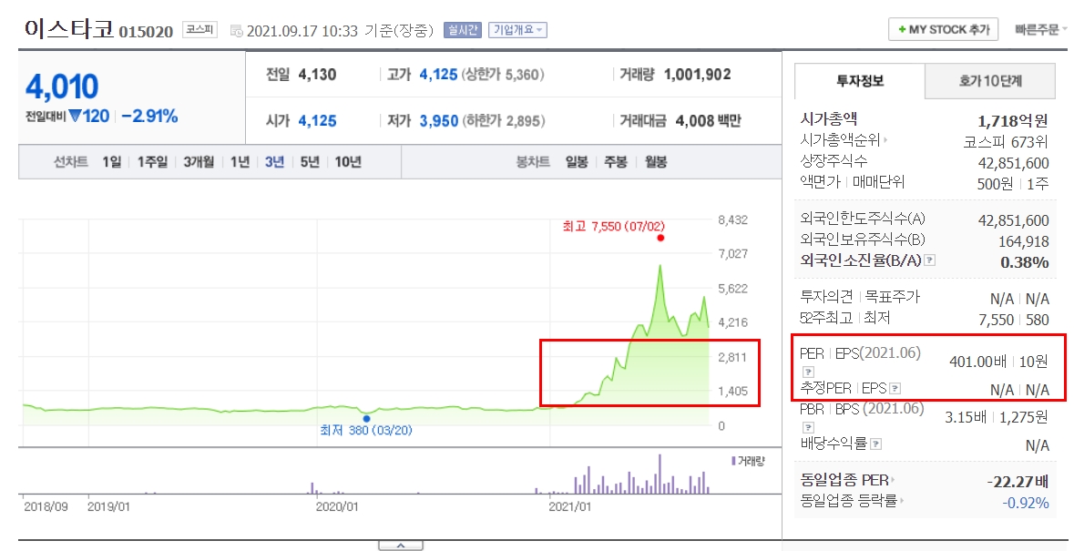 이스타코는 부동산 매매업과 오피스텔이나 상가의 임대사업을 하고 있는 업체입니다. 이스타코의 업종이 이재명 경기도지사의 장기공공주택 정책과 연관이 되어서 이재명테마주로 묶였습니다. 이스타코는 작년영업이익률은 5.8%대를 기록하였고 순이익은 1억 적자를 기록하였습니다. 영업이익률이 높은데 순이익이 적자라면 일시적인 원인으로 인한 적자라고 보여집니다.