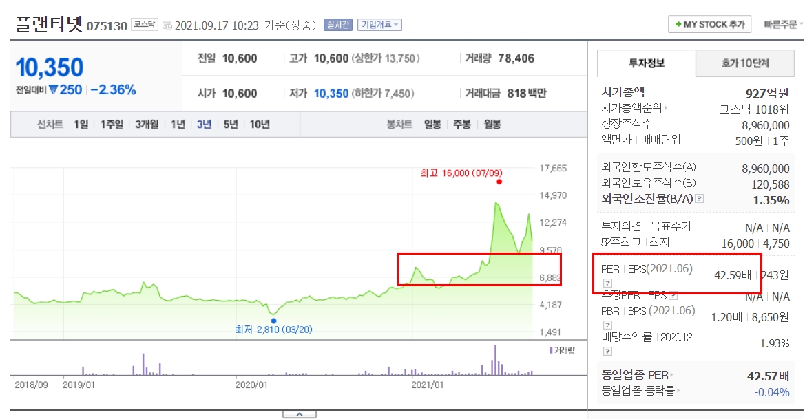 플랜티넷은 인터넷 유해 콘텐츠차단 서비스를 제공하는 업체입니다. 이 지사가 성남시장으로 근무할 당시 자회사와 성남시가 창업 생태계 구축 관련 협약을 맺었다는 이유로 이재명 관련주로 묶였습니다. 플랫티넷의 작년 영업이익률은 6%대에 14억원의 순이익을 기록하였습니다.플랜티넷의 인터넷 유해 콘텐츠차단 서비스는 향후 스마트폰과 인터넷 활성화로 어느 정도 성장성이 기대되는 사업이라고 보여집니다. 실적도 제법 탄탄하지만 다소 높은 밸류에이션이 문제이긴 합니다. 주가는 단기 폭등해서 지금 조정을 받고 있습니다.