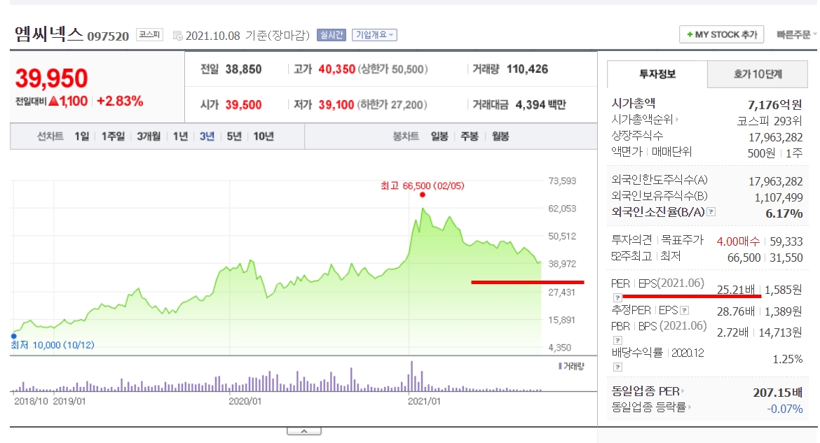 향후 카메라모듈의 성장 잠재력은 전기차,자율주행차에서 나타납니다. 자율주행차의 경우 외부정보를 카메라를 통해서 입력을 받습니다. 그러면 현재 카메라모듈의 수요는 폭발적으로 늘어날 가능성이 농후합니다. 엠씨넥스는 순이익이 작년에 380억원 정도 였지만, 올해는 250억 가량 예상됩니다. 스마트폰 수요가 줄어든 탓입니다. 하지만 미래 성장성은 의심할 필요가 없을 것 같습니다. 실적 대비 주가는 다소 높기는 하나 3분할 매수는 슬슬 시작해도 될 것 같습니다.