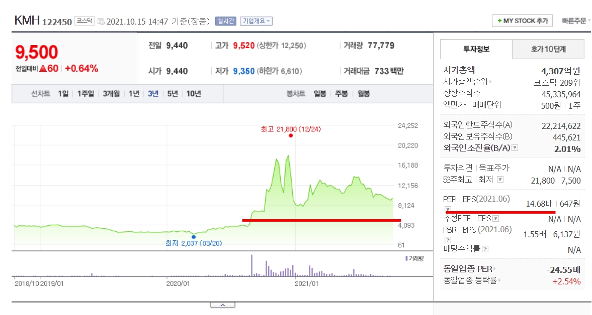 KMH는 실적이 아주 좋습니다. 영업이익률이 20%대에 이르고 있네요. 향후 멀티미디어 시장의 확장으로 실적의 신장세가 예상됩니다. 그리고 KMH는 현재 실적 대비 주가 면에서도 고평가 구간이라고는 보여지지 않습니다. 안전한 투자를 원하면 조금더 조정을 받는 지지선에서 분할 매수로 대응하면 손해볼 주식으로는 보이지가 않습니다.