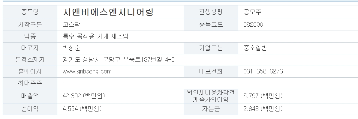 0월 신규 공모주 지앤비에스엔지니어링 청약 일정