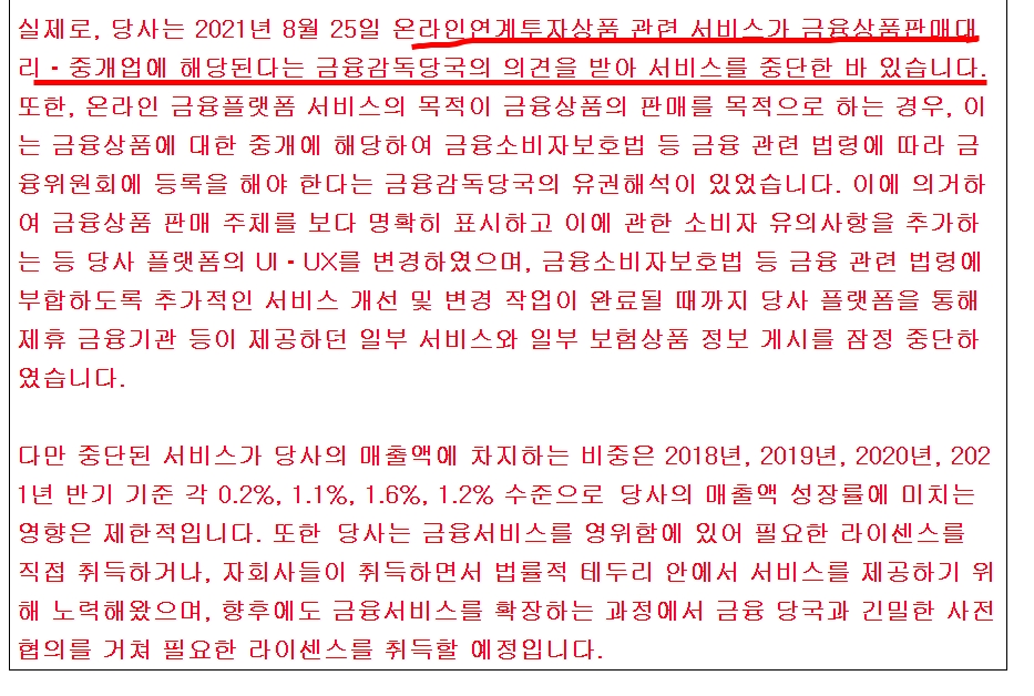 카카오페이는 결제 사업의 탄탄한 시장 지위를 기반으로 카카오페이 플랫폼을 통해 당사의 자회사 등 제휴사가 제공하는 대출, 투자, 보험상품과 관련하여 대출비교 서비스 및 투자, 보험에 대한 플랫폼 서비스 등 서비스 사업으로 금융플랫폼 사업 영역을 확장하고 있습니다. 카카오페이는 금융상품이나 서비스를 직접 설계 및 공급하기보다는 제휴 금융회사의 상품과 서비스를 당사의 플랫폼에 게시하여 수수료를 취하는 구조를 취하고 있습니다. 따라서 해당 사업부문의 경우에는 유의미한 시장규모를 산출하기가 어렵습니다.