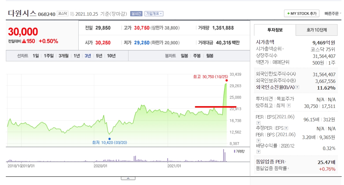 다원시스는 삼성전자와 다원시스 등에 따르면 양사는 반도체 부품(차세대 나노 반도체 에칭 공정용 전자식 임피던스 매처) 공급 계약과 지분 투자 계약을 협의하고 있음, 원전관련주이자 반도체 부품관련주임. 최근에 너무 급등한 관계로 실적대비 주가면에서 아주 고평가 국면임