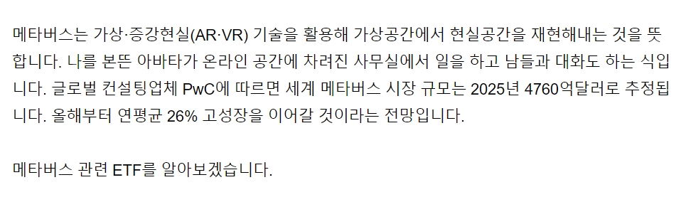 메타버스 관련 ETF 소개