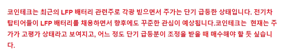 코윈테크는 공정자동화설비의 제조 및 판매에 종사하는 회사입니다. 코윈테크는 공정자동화설비에는 이차전지 자동화설비, 석유화학 및 일반 공정 자동화설비, 클린 자동화설비 등이 포함됩니다. 이외에도, 회사는 자동화 물류설비의 유지 및 보수를 영위하고 있습니다.코윈테크가 지분 50%를 보유한 탑머티리얼의 LFP 전지 설계·제조 능력을 보유하고 있습니다.