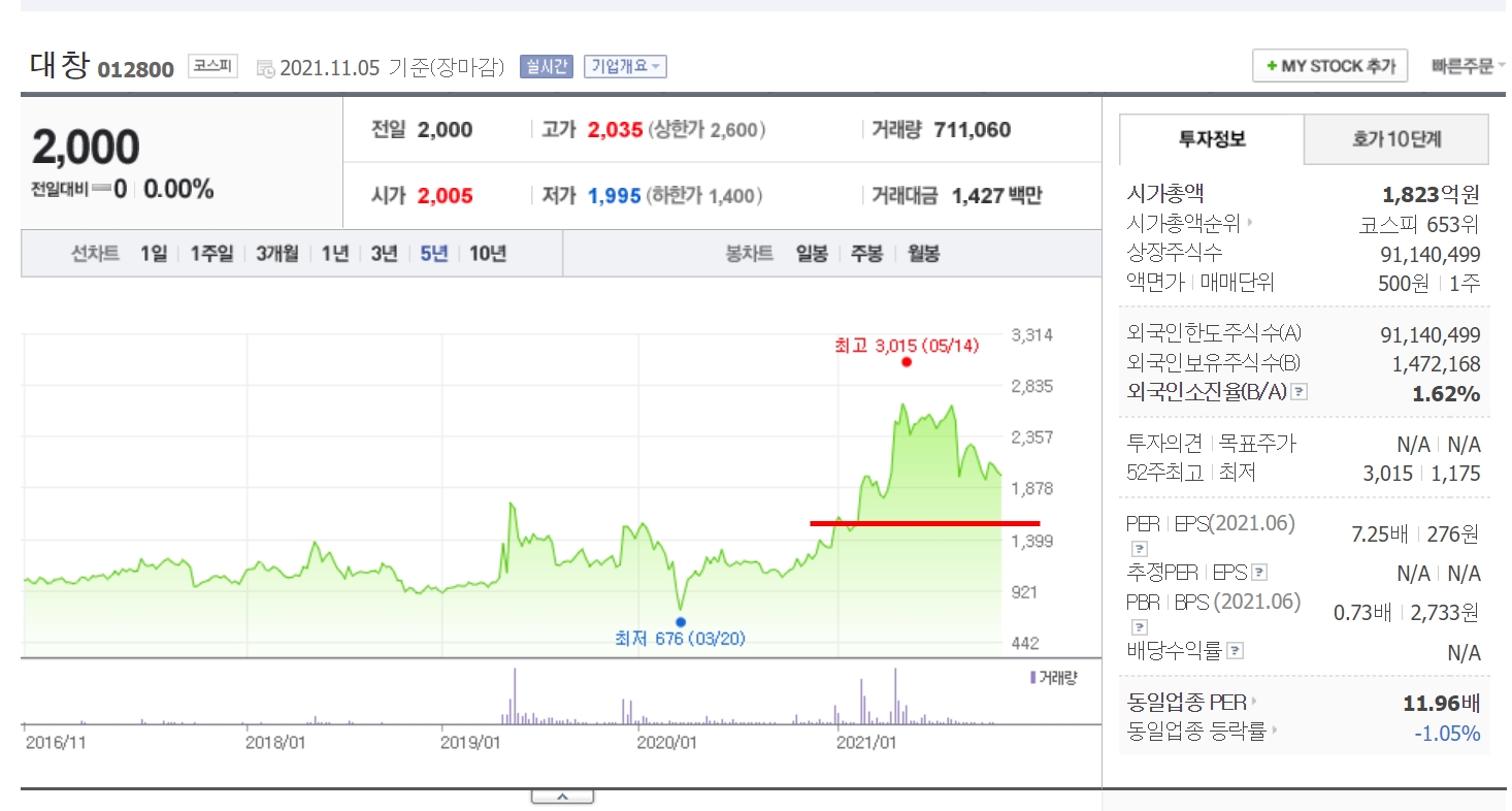 휴비스079980 경인양행012610 대창012800 주가