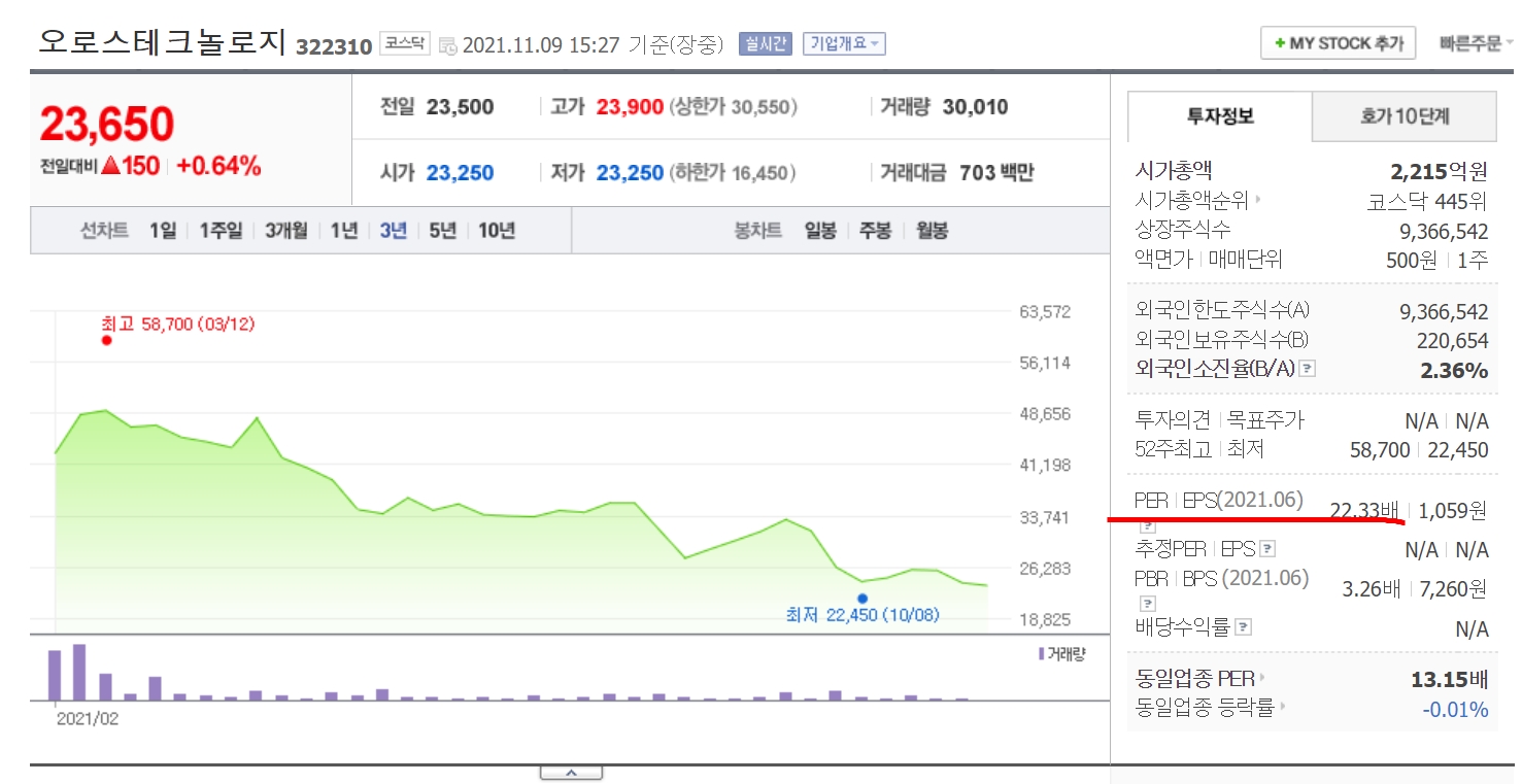 반도체 장비 관련주, 오로스테크놀로지 한양이엔지 주가